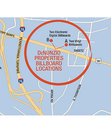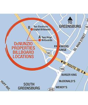 DeNunzio Properties Billboards owns eight (8) billboards strategically located on Route 30, which is the most heavily traveled highway in Westmoreland County. Our locations are within all of the local major shopping destinations along Route 30 in our region.