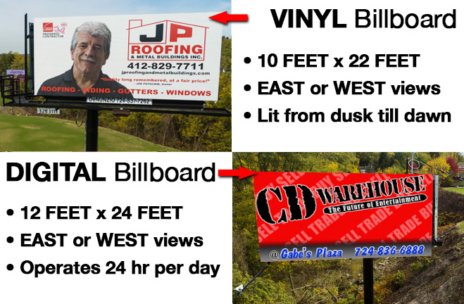 Whether your company is located in Greensburg or North Huntingdon, or your business is in need of representation in the area, we welcome interested parties to use the map above to do your own personal drive by of these great billboard locations. Once you see them in person, we feel very confident that you will agree they make an impressive advertising impact on travelers in the Greensburg, North Huntingdon and surrounding areas.